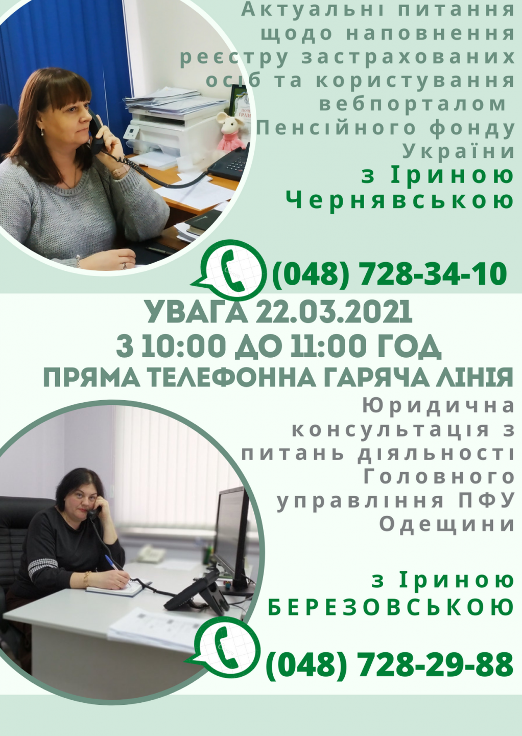 Керівники Пенсійного фонду Одещини проводят “Прямі телефонні гарячі лінії”