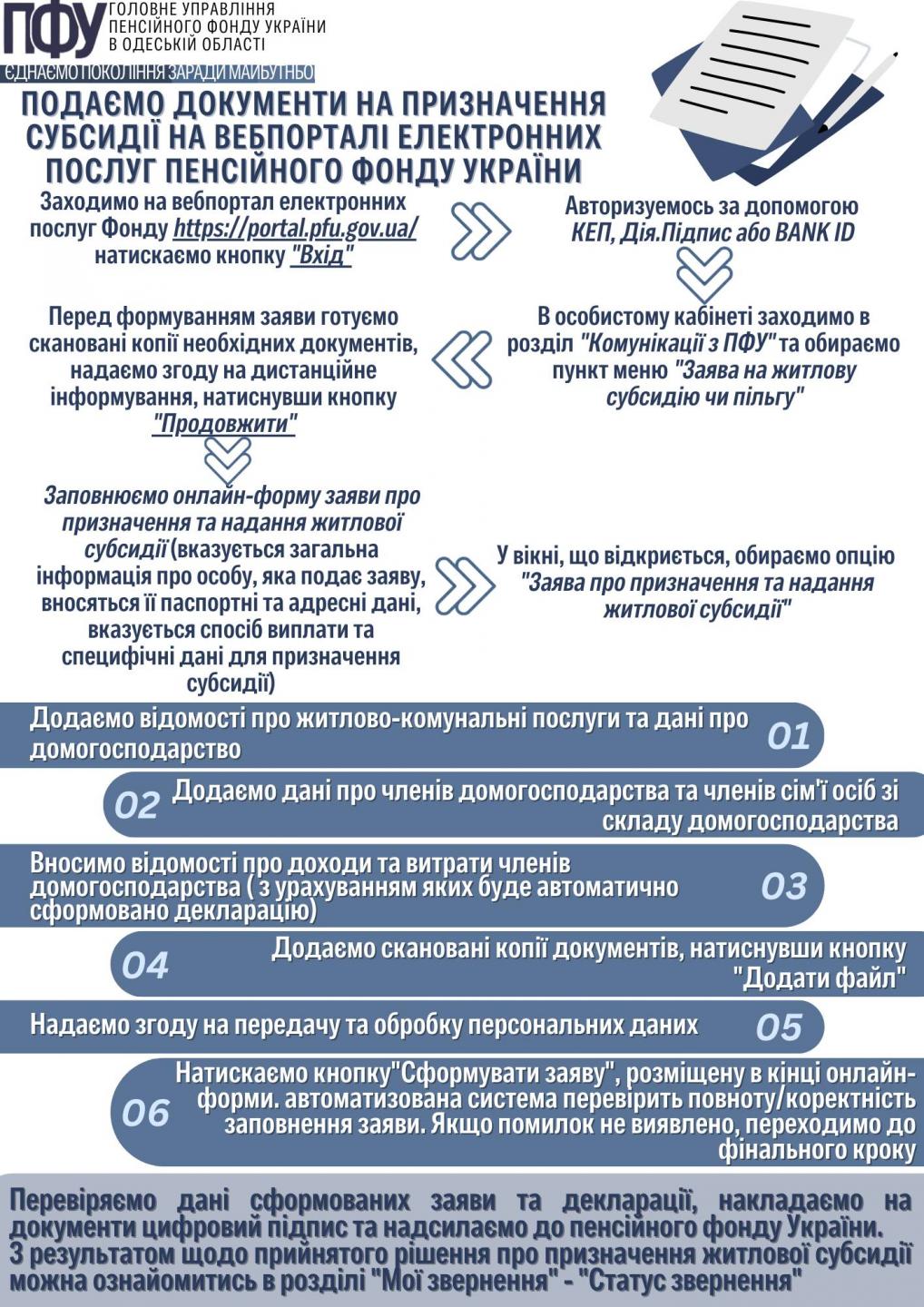 Подаємо документи на призначення субсидії на вербпорталі електронних послуг Пенсійного фонду України