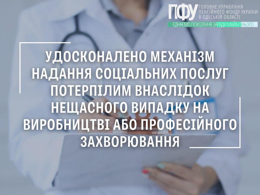 Удосконалено механізм надання соціальних послуг потерпілим внаслідок нещасного випадку на виробництві та професійного захворювання