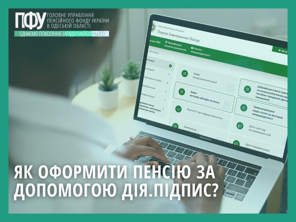 Відтепер, для зручності людей, які бажають подати заяву на призначення пенсії, на вебпорталі електронних послуг Фонду реалізовано можливість оформлення пенсії за допомогою Дія.Підпису.