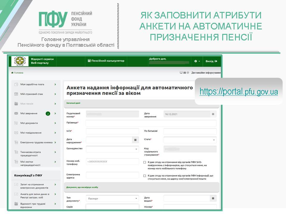 Як заповнити атрибути анкети для автоматичного призначення пенсії