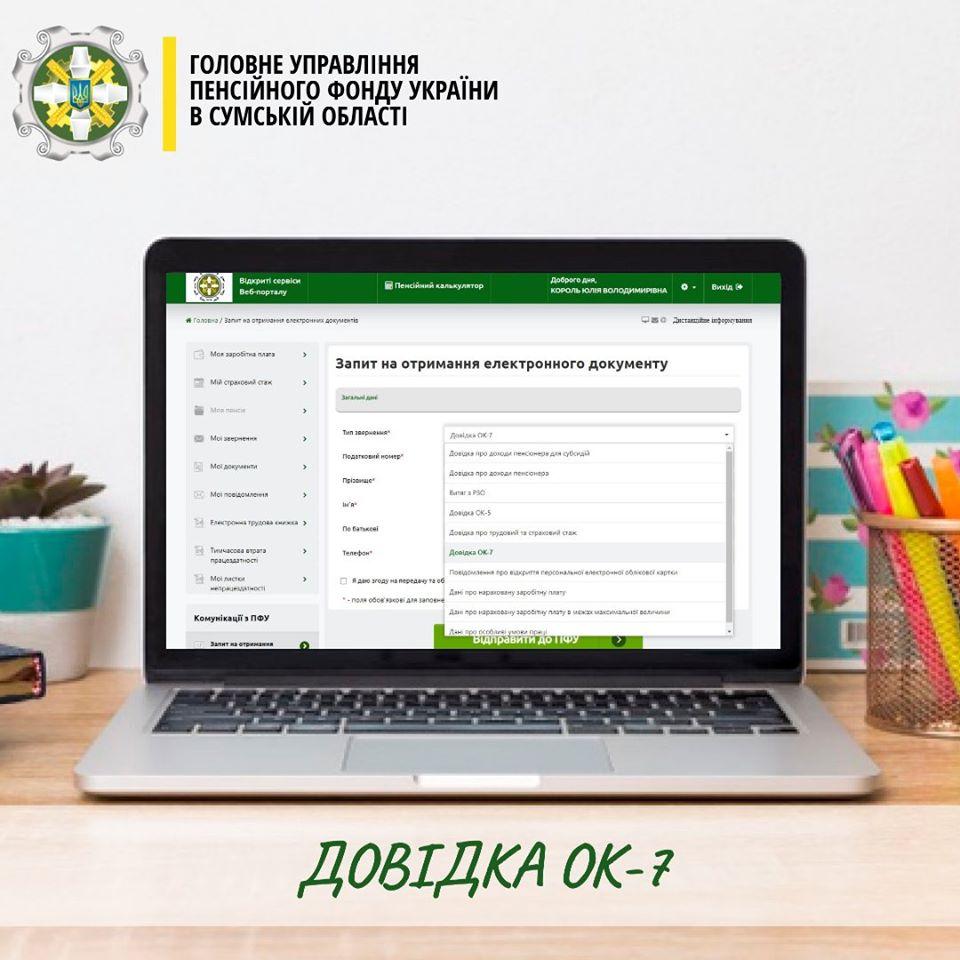 Роботодавці для отримання довідки ОК-7 можуть скористатися Кабінетом страхувальника, а застраховані особи — Особистим кабінетом вебпорталу електронних послуг Пенсійного фонду: portal.pfu.gov.ua.