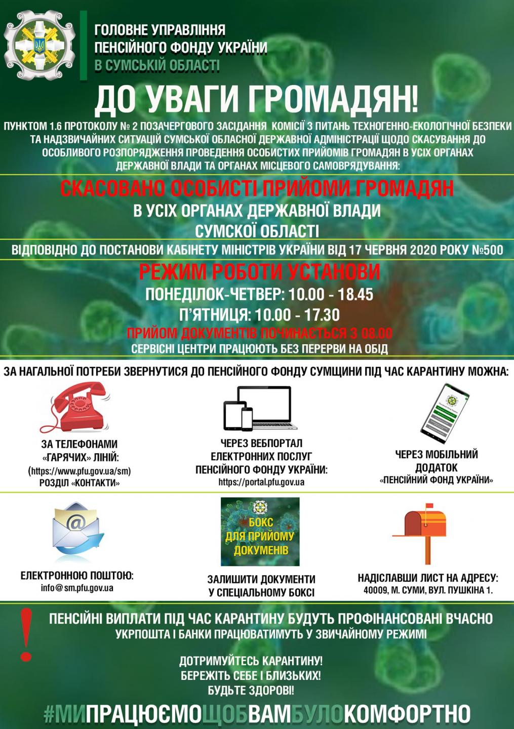 НАГАДУЄМО ГРАФІК РОБОТИ ПЕНСІЙНОГО ФОНДУ СУМЩИНИ
