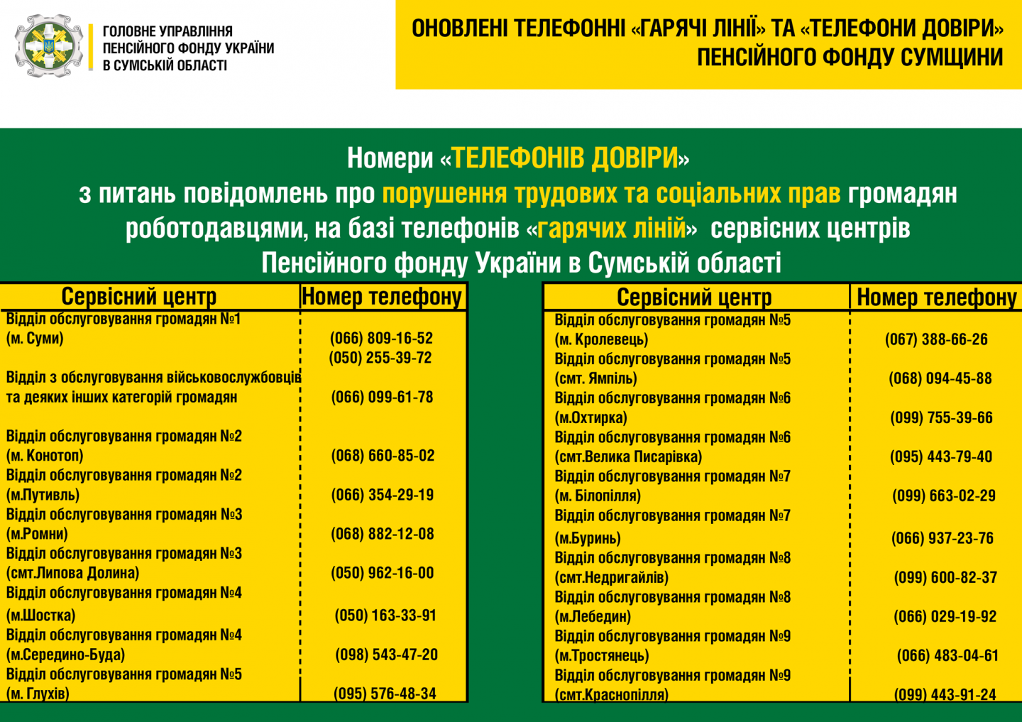 Отримати роз’яснення з будь-яких питань пенсійного забезпечення ви можете за телефонами «гарячих ліній» Пенсійного фонду Сумщини.