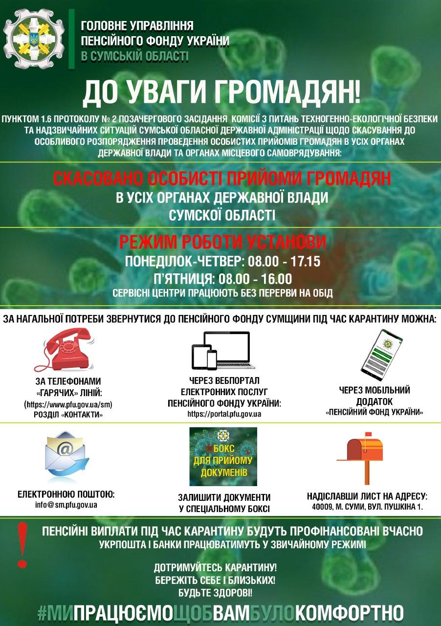 РЕЖИМ РОБОТИ ПЕНСІЙНОГО ФОНДУ СУМЩИНИ