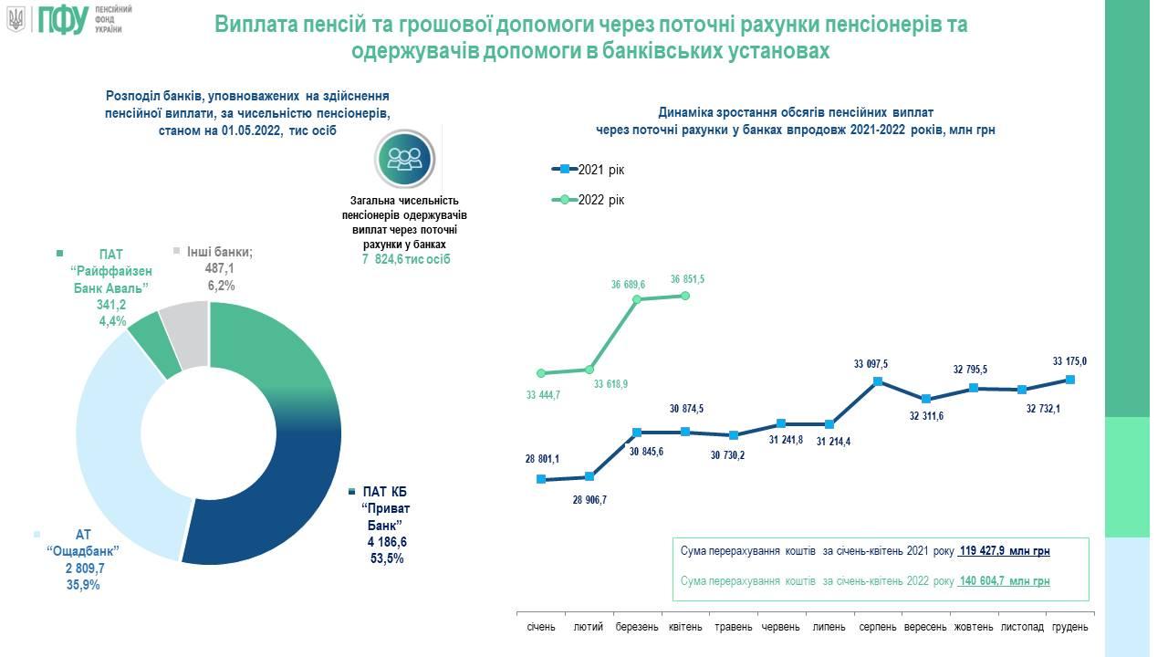 Інформація щодо чисельності отримувачів пенсій через банки та виплатні об’єкти поштового зв’язку за травень 2022 року