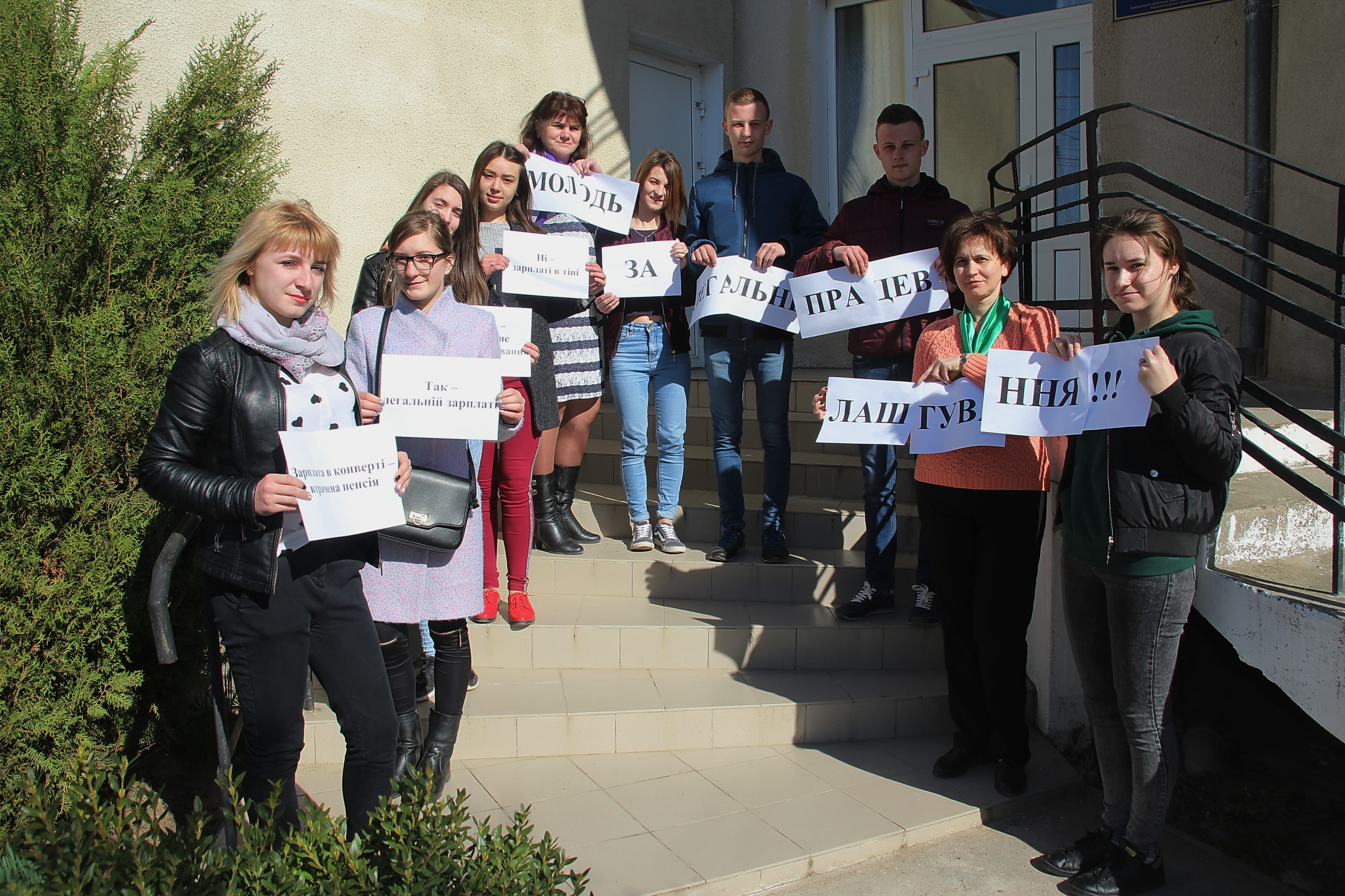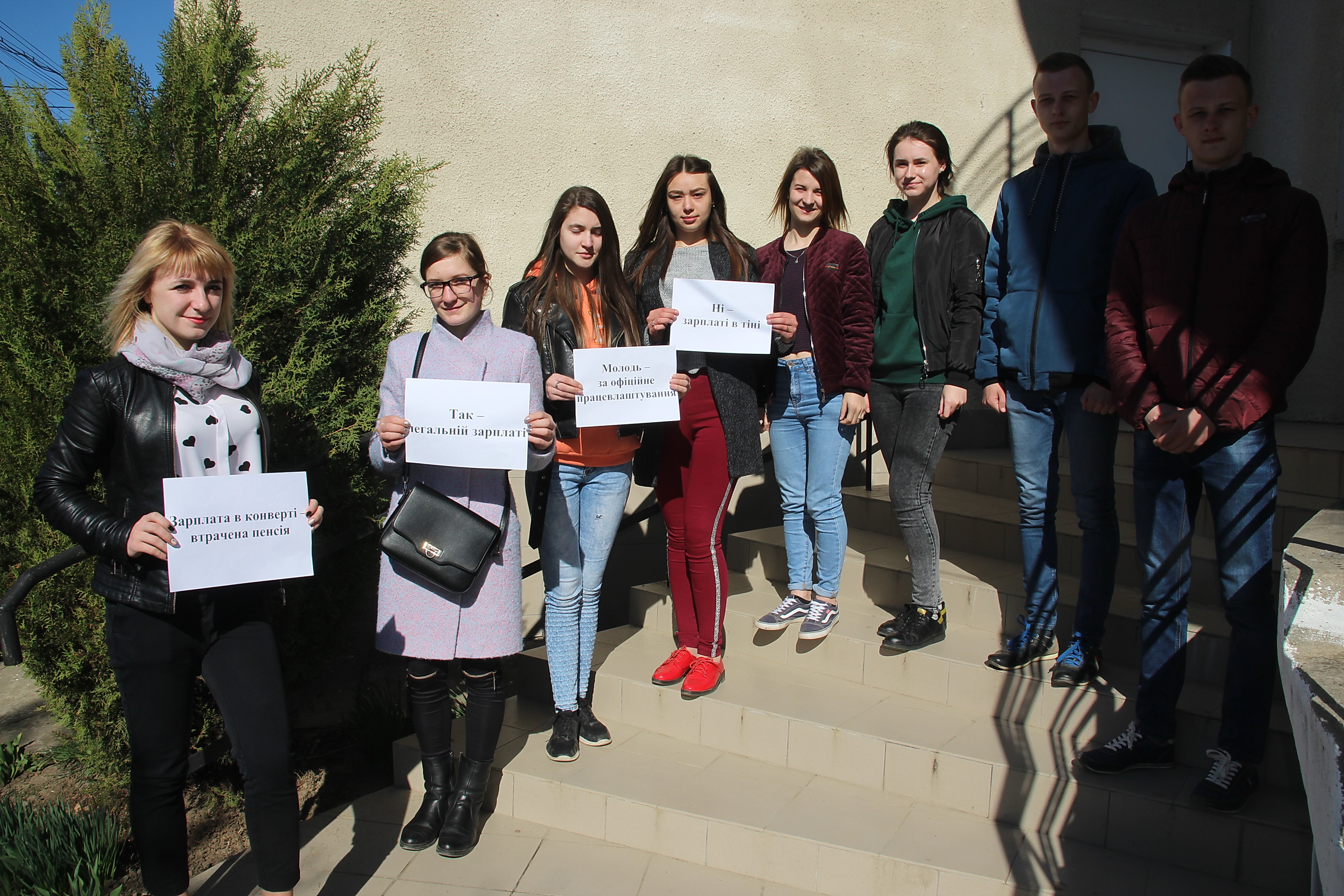 З метою привернення уваги громадян до проблем легалізації заробітної плати і трудових відносин, заступник начальника Чортківського об’єднаного управління Пенсійного фонду України Ольга Копчук, провела флешмоб за участі студентів Заліщицького аграрного коледжу імені Євгена Храпливого.