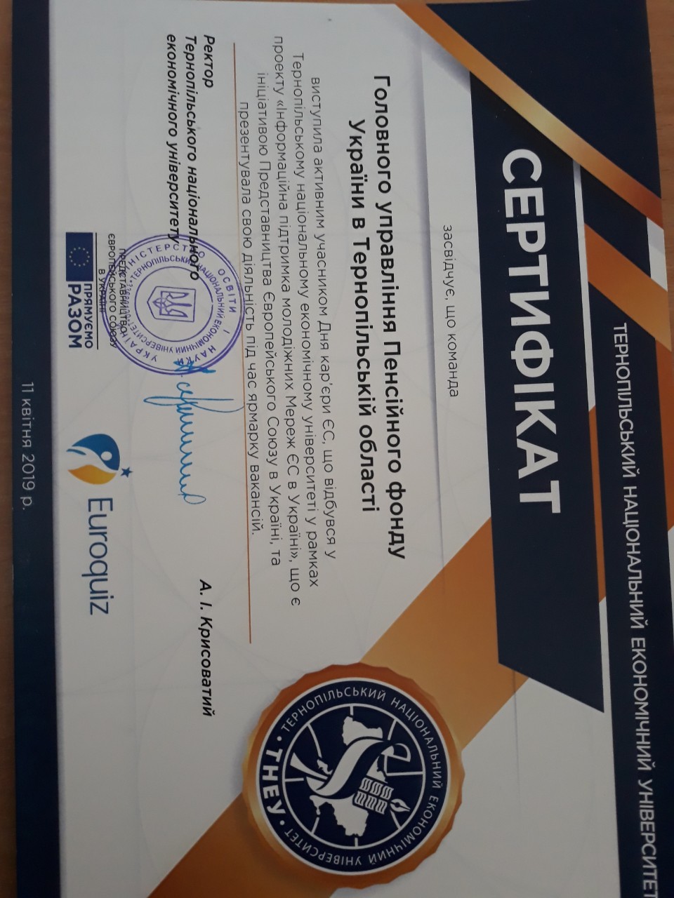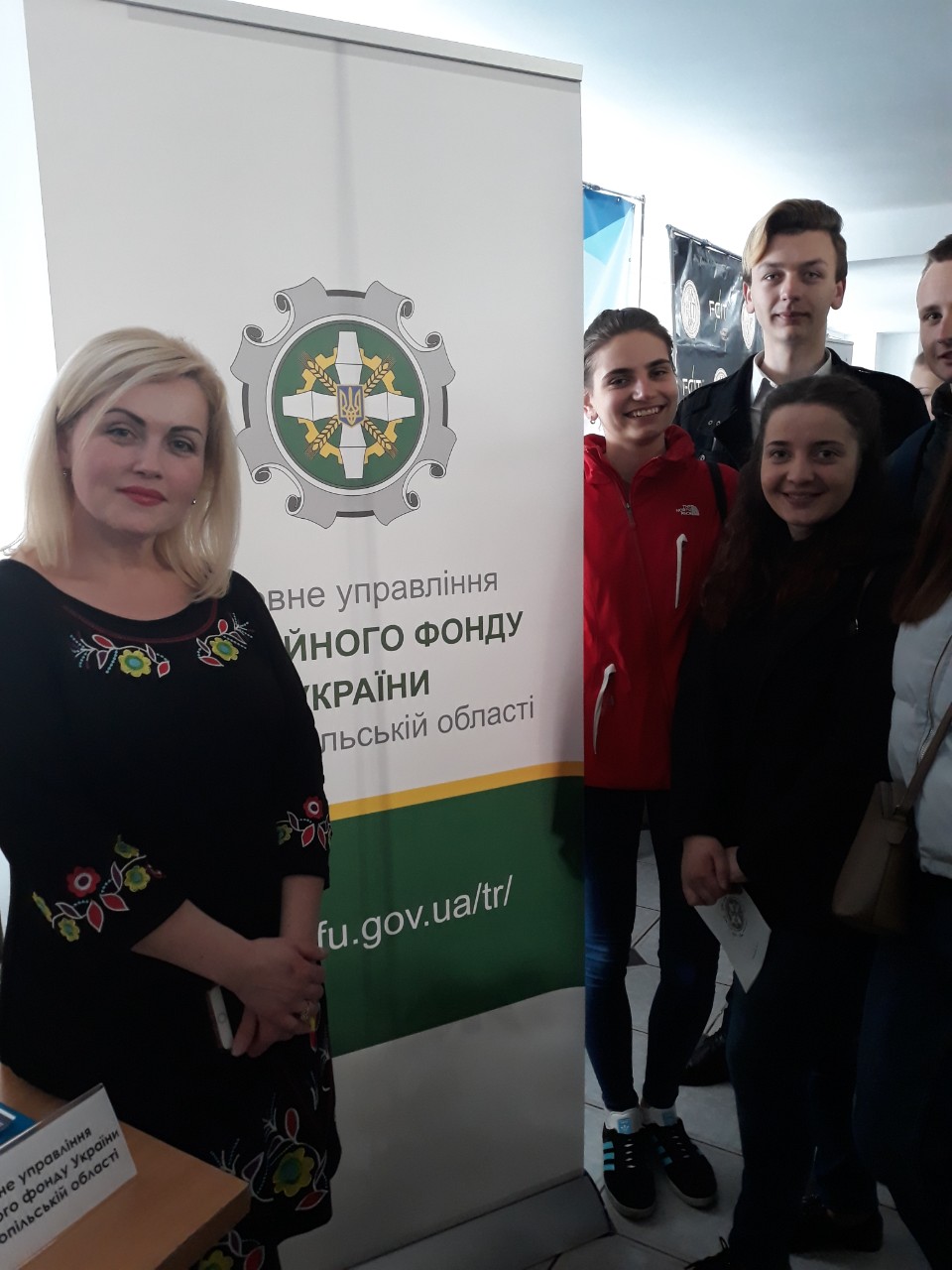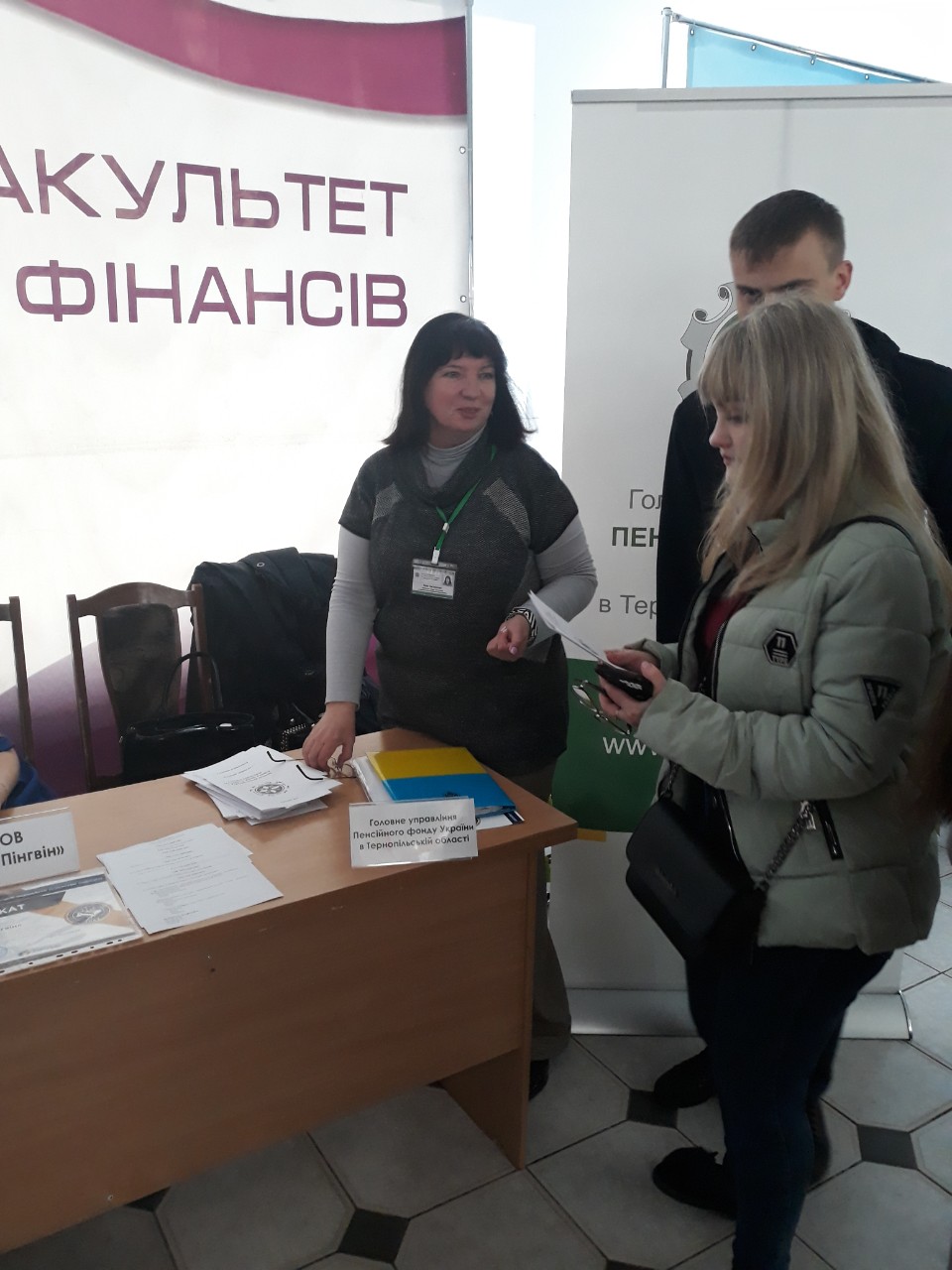 Начальник управління по роботі з персоналом Головного управління Пенсійного фонду України в Тернопільській області Лілія Литвинчук під час заходу представила напрями діяльності Фонду учасникам зустрічі, проінформувала студентів про можливості працевлаштування та кар’єрного росту. Ознайомила молодь з наявними вакансіями та безпосередньо поспілкувалася з претендентами.