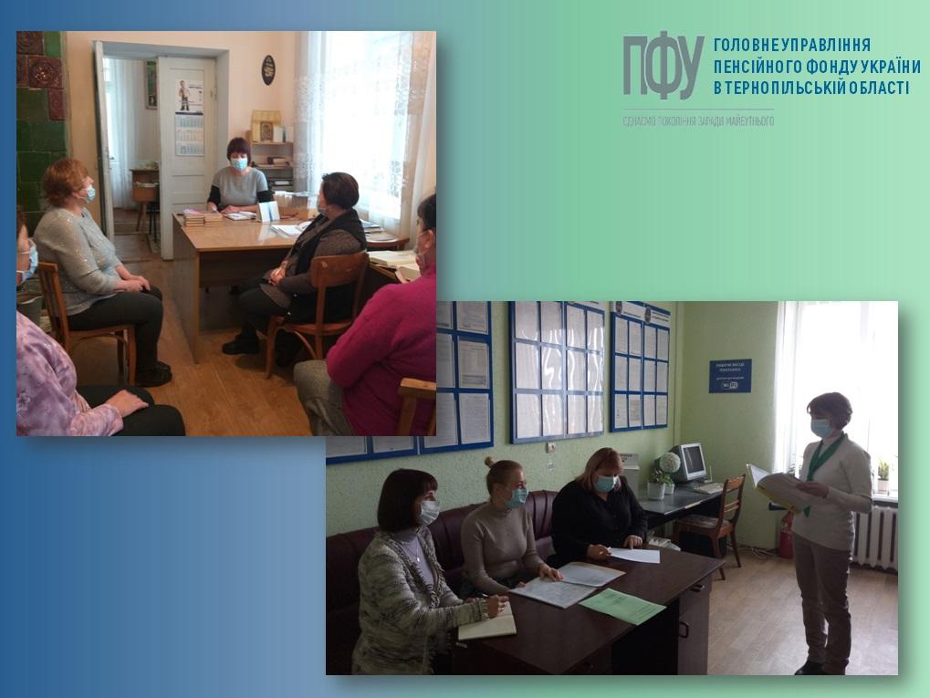 Працівники Головного управління Пенсійного фонду України в Тернопільській області беруть активну участь в організації та проведенні консультаційно-інформаційних заходів у сфері комунікації. Цього разу спеціалісти відділів обслуговування громадян (сервісних центрів) провели зустрічі з трудовими колективами Державної податкової служби міста Монастириської і Відділу культури, туризму та релігії Бережанської міської ради.