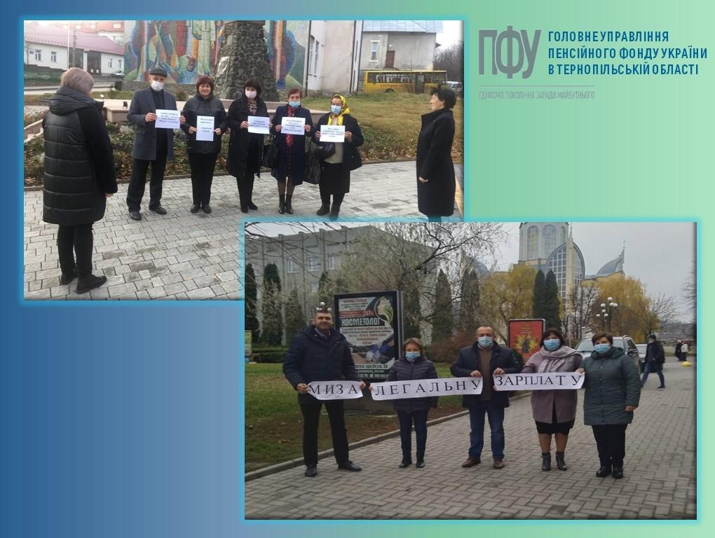 Під час заходів працівники Фонду звернули увагу мешканців Тернопільщини на проблему «тіньової» зайнятості. Чимало громадян погоджуються на отримання заробітної плати в «конвертах» та не оформляють свої трудові відносини відповідно до норм чинного законодавства про працю. Більшість з них не розуміють, що окрім недоодержання коштів бюджетом, за них не сплачуються страхові внески та відповідно їм не зараховується страховий стаж, який необхідний для призначення пенсії у майбутньому