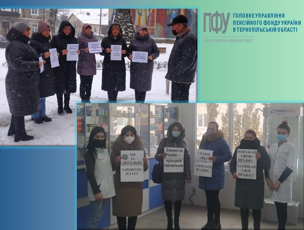 Під час заходів фахівці Фонду звернули увагу місцевих жителів, що неофіційне оформлення трудових відносин та отримання заробітної плати в «конвертах» позбавляє їх соціальних гарантій з боку держави, серед яких гідні умови праці, виплата заробітної плати двічі на місяць у розмірі не менше мінімального, щорічні оплачувані відпустки та оплата лікарняних.