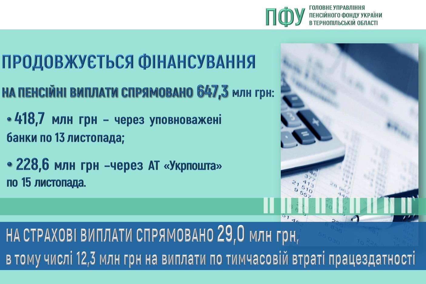 На страхові виплати у Тернопільській області спрямовано 29,0 млн грн, в тому числі 12,3 млн грн на виплати по тимчасовій втраті працездатності.