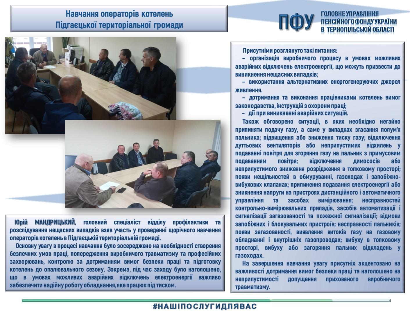 Юрій Мандрицький, головний спеціаліст відділу профілактики та розслідування нещасних випадків взяв участь у проведенні щорічного навчання операторів котелень в Підгаєцькій територіальній громаді.