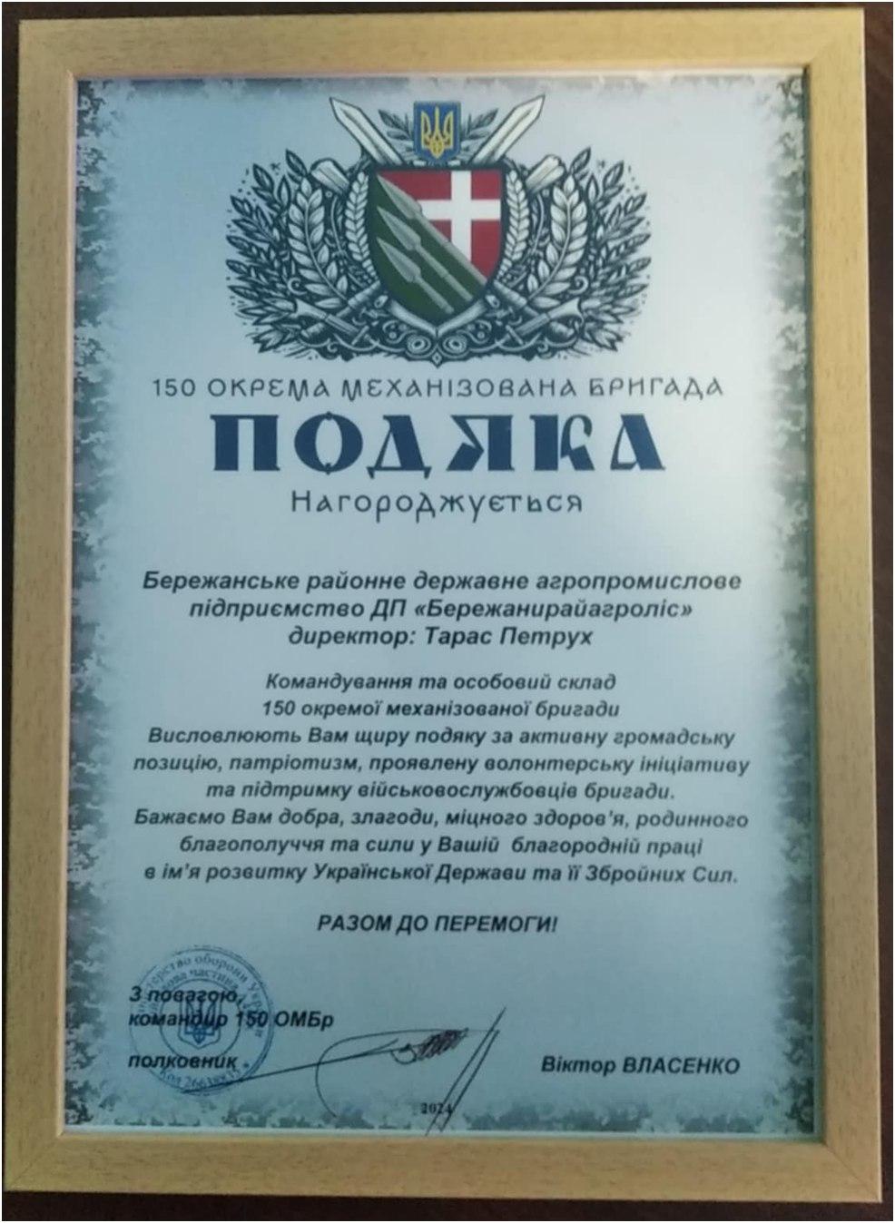 Також підприємство активно займається волонтерською діяльністю та наданням допомоги ЗСУ, за що неодноразово отримувало подяки.