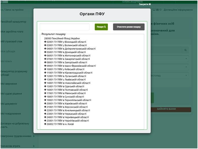 - вибрати територіальний орган Пенсійного фонду, який заявник бажає відвідати: