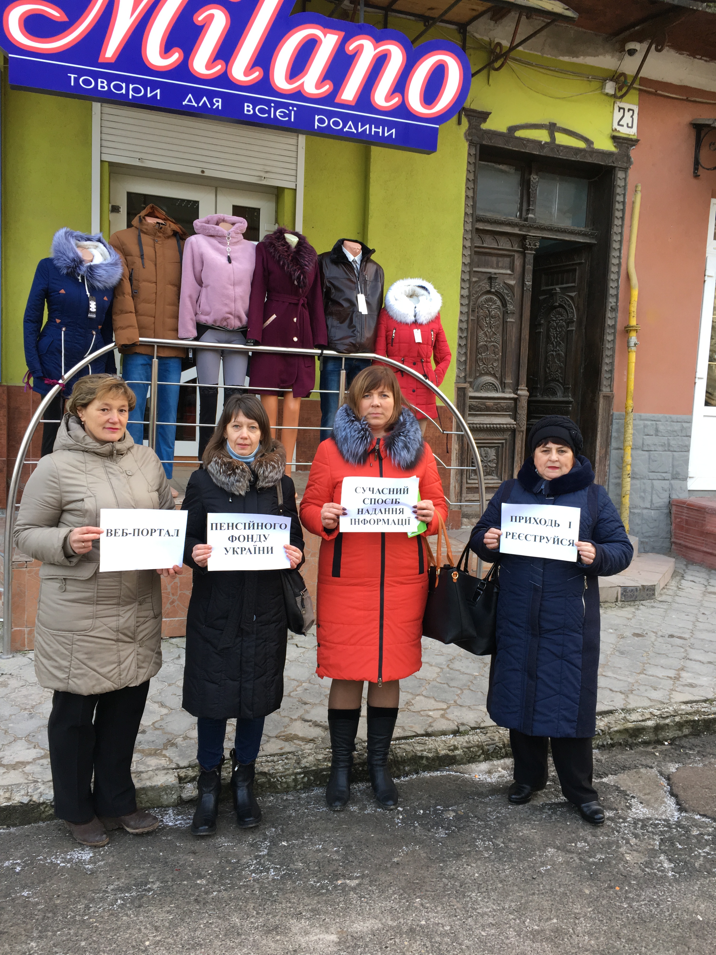 Представники Бережанського об’єднаного управління Пенсійного фонду України Тернопільської області провели флешмоб на тему: «Веб-портал Пенсійного фонду України — сучасний спосіб надання інформації».