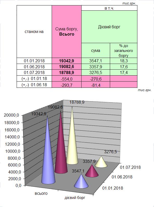 Динаміка боргу по страхових внесках економічно-активних платників станом на 01.07.2018