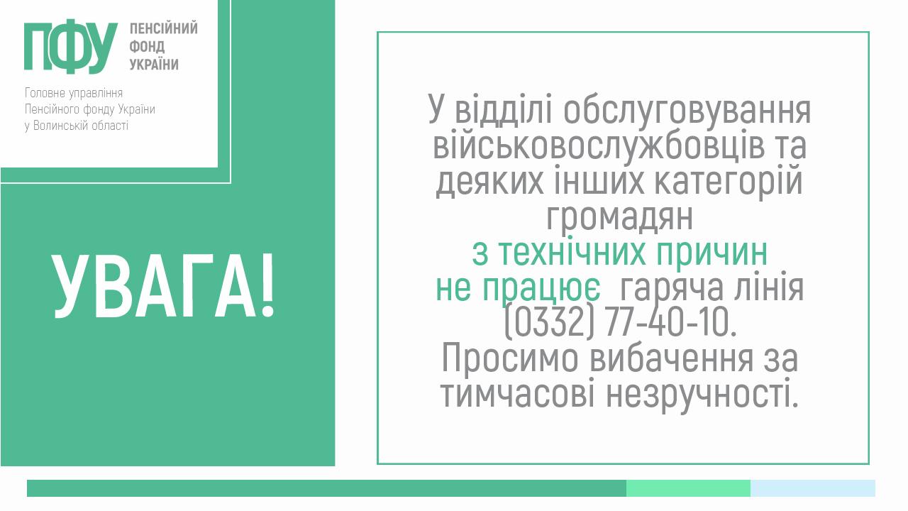 Увага! Не працює гаряча лінія у відділі обслуговування військовослужбовців та деяких інших категорій громадян