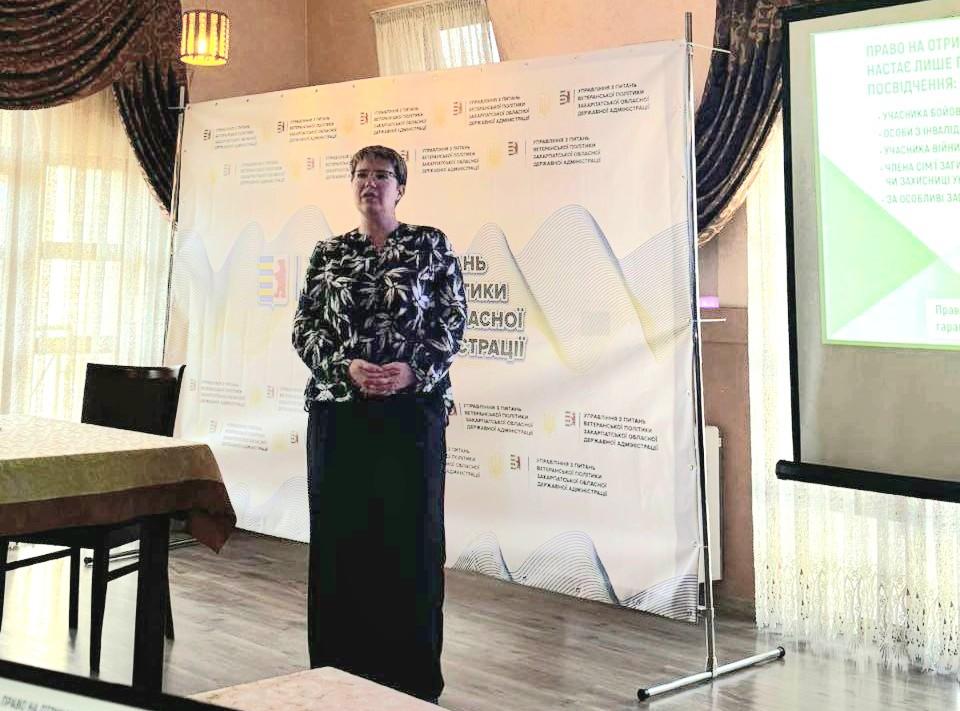 Начальниця управління обслуговування громадян Надія Семенюк взяла участь у навчальному семінарі «Ефективний супровід ветеранів війни: міжвідомча взаємодія та сучасні інструменти підтримки», який відбувся у місті Хуст.
