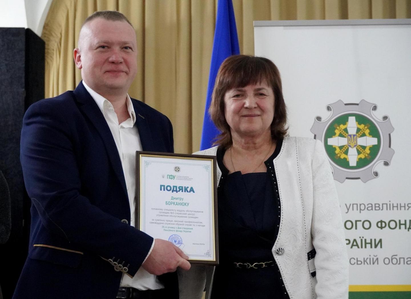 - Борканюку Дмитру, головному спеціалісту відділу обслуговування громадян №5 (Рахівський сервісний центр);