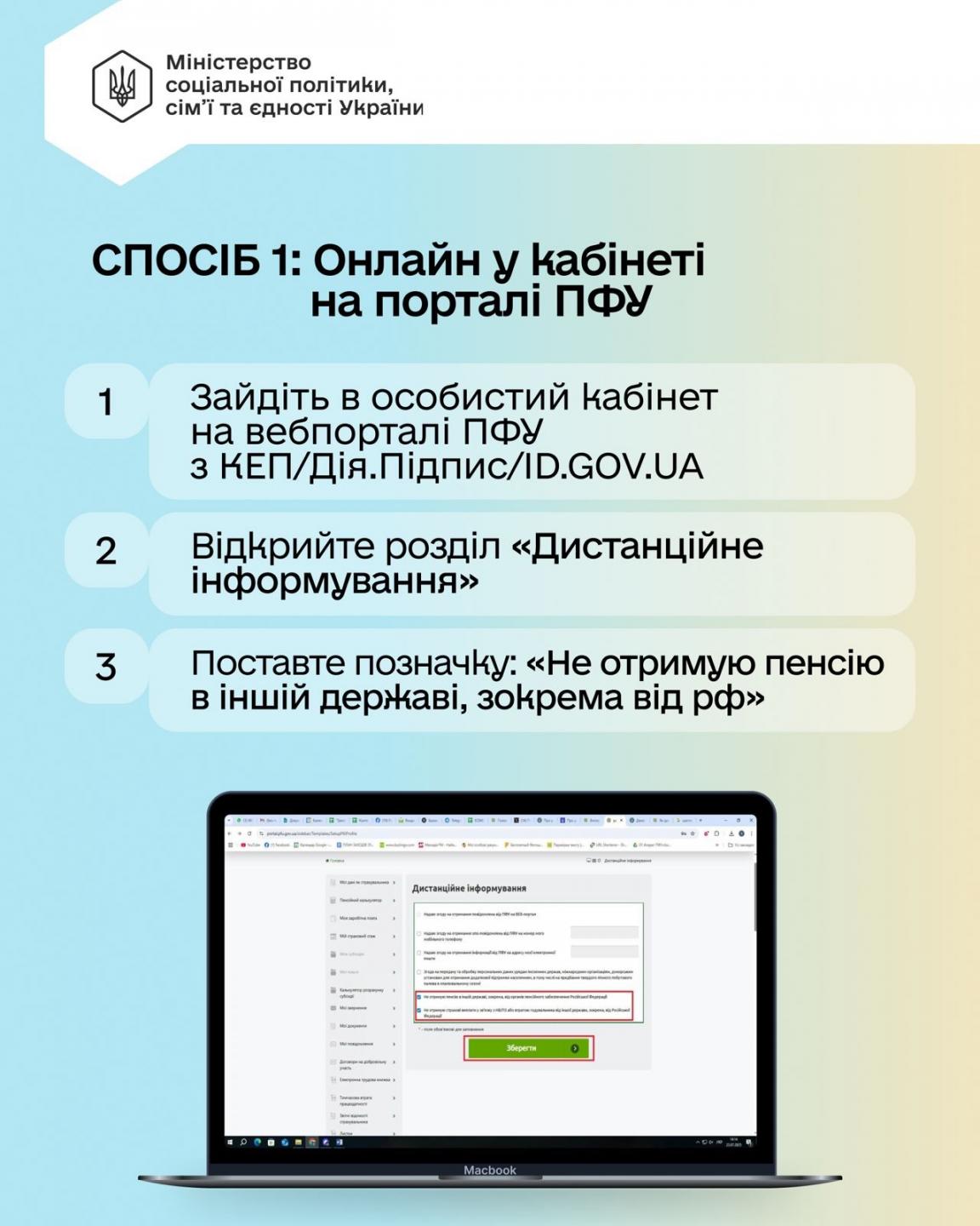 Як повідомити ПФУ, що не отримуєте виплати від рф?