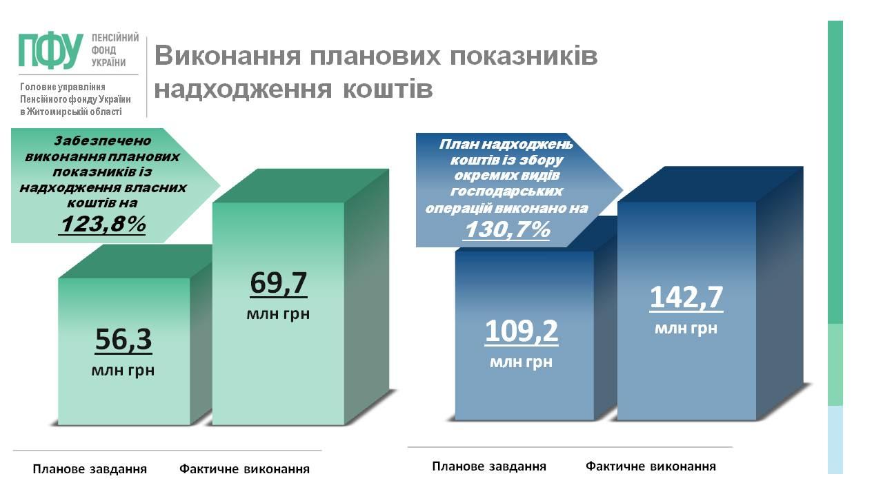 Планові показники із надходження коштів до спеціального фонду Державного бюджету України зі збору на обов’язкове державне пенсійне страхування з окремих видів господарських операцій виконано на 130,7 %, понад   план  надійшло 33,5  млн грн.