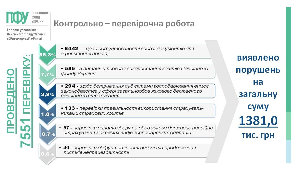 Slajd18 - Огляд основних підсумків роботи Головного управління Пенсійного фонду України в Житомирській області за 2023 рікЗабезпечено проведення 7551 перевірку суб’єктів системи загальнообов’язкового державного пенсійного та соціального страхування.