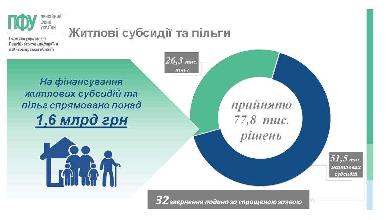 Slajd41 - Огляд основних підсумків роботи Головного управління Пенсійного фонду України в Житомирській області за 2023 рікНа фінансування та виплату житлових субсидій та пільг на оплату житлово – комунальних послуг, придбання твердого та рідкого пічного побутового палива і скрапленого газу (далі – житлові субсидії та пільги) упродовж звітного періоду спрямовано 1616,8 млн грн.