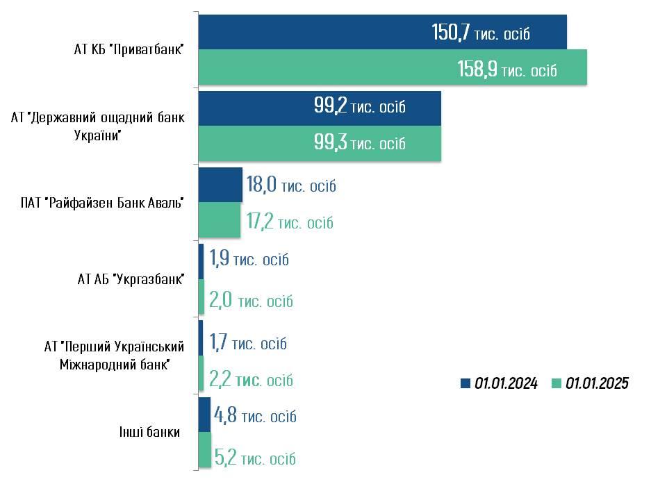 Станом на 1 січня 2025 року на виплату пенсій через банки укладено 26 договорів.